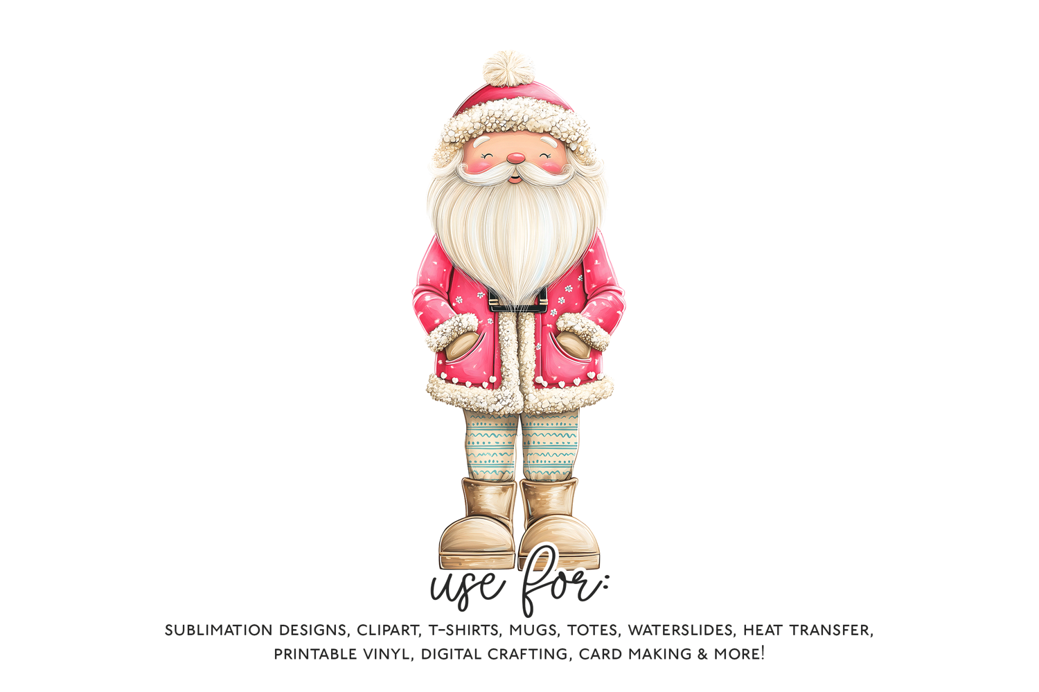 T-shirt Sublimation Digital Download Png Santa Sublimation Design Trendy Christmas Sublimation Pink Santa Png Retro Pink Christmas Girly Santa Claus Clipart Modern Holiday Graphic Pink Santa Coat Chunky Boots Art