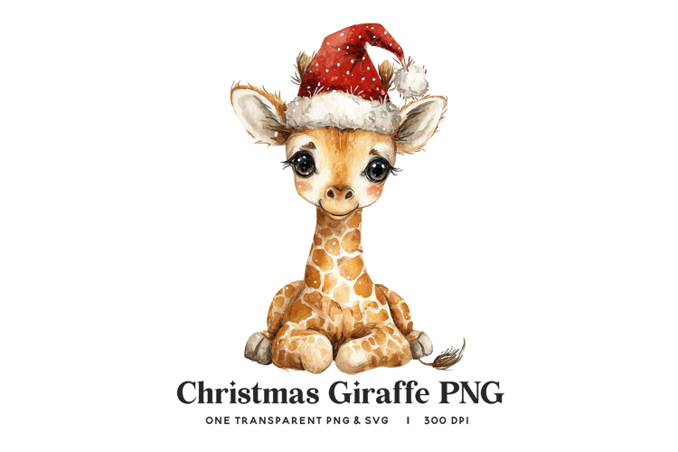 Acquire this captivating and versatile graphic asset: the Christmas Giraffe Clipart PNG. This high-resolution, 300 DPI watercolor illustration features a delightful baby giraffe with an oversized Santa hat and a cheerful expression. Provided as a single, large, transparent background PNG, this file is ready to be seamlessly printed onto a variety of products. This unique animal design is an invaluable resource for creators focusing on safari, nursery, and whimsical Christmas projects, ensuring a charming and professional look for all your seasonal merchandise.