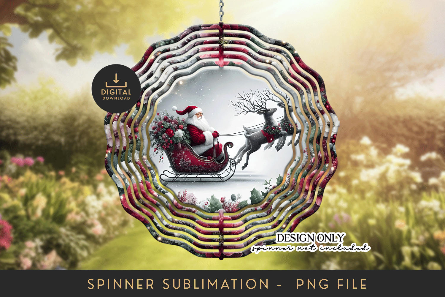 Santa Sleigh Wind Spinner PNG Sublimation Design Art