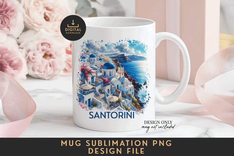 This premium Santorini Mug Sublimation PNG provides creators with an indispensable asset for custom drinkware projects. The 300 DPI graphic features a gorgeous watercolor landscape of the iconic Greek village, showcasing the bright blue Aegean Sea and famous architecture. Optimized as a full wrap template, this file ensures vibrant color and seamless transfer onto ceramic mug blanks, giving makers a professional edge. This high-quality, easy-to-use file is perfect for designers looking to quickly add trending travel and destination designs to their product offerings.
