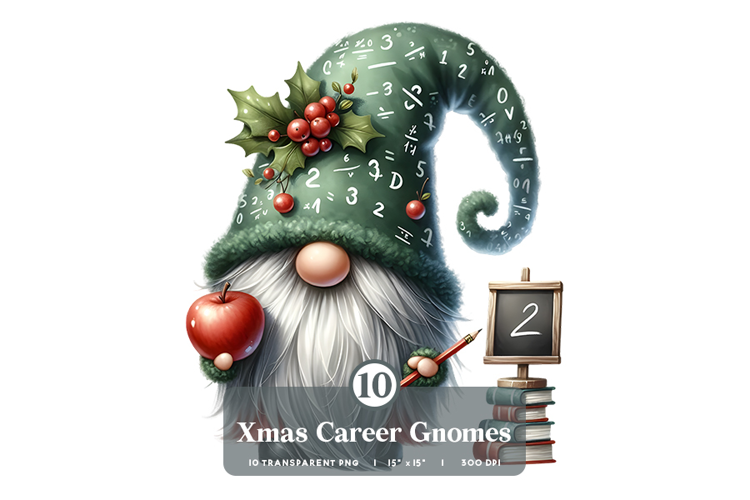 Elevate your holiday digital projects with this versatile set of 10 high-quality, transparent PNG files featuring professionally themed Christmas Gnomes. This collection includes various beloved occupations—from Gardener to Mail Carrier and Artist—each styled with intricate seasonal details like holly and winter textures. The sharp 300 DPI resolution ensures clean, crisp printing for a vast array of creative applications, including planner stickers, holiday party invitations, personalized cards, and crafting digital paper, providing a valuable asset for any designer seeking unique holiday graphics.
