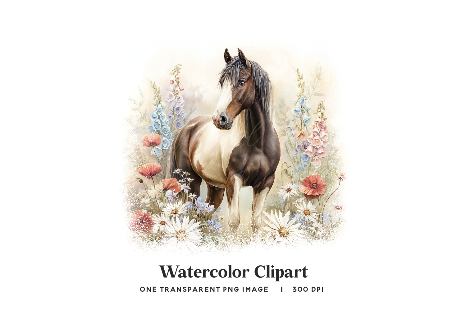Watercolor Horse Floral Meadow PNG Clipart Equestrian Art example image 1