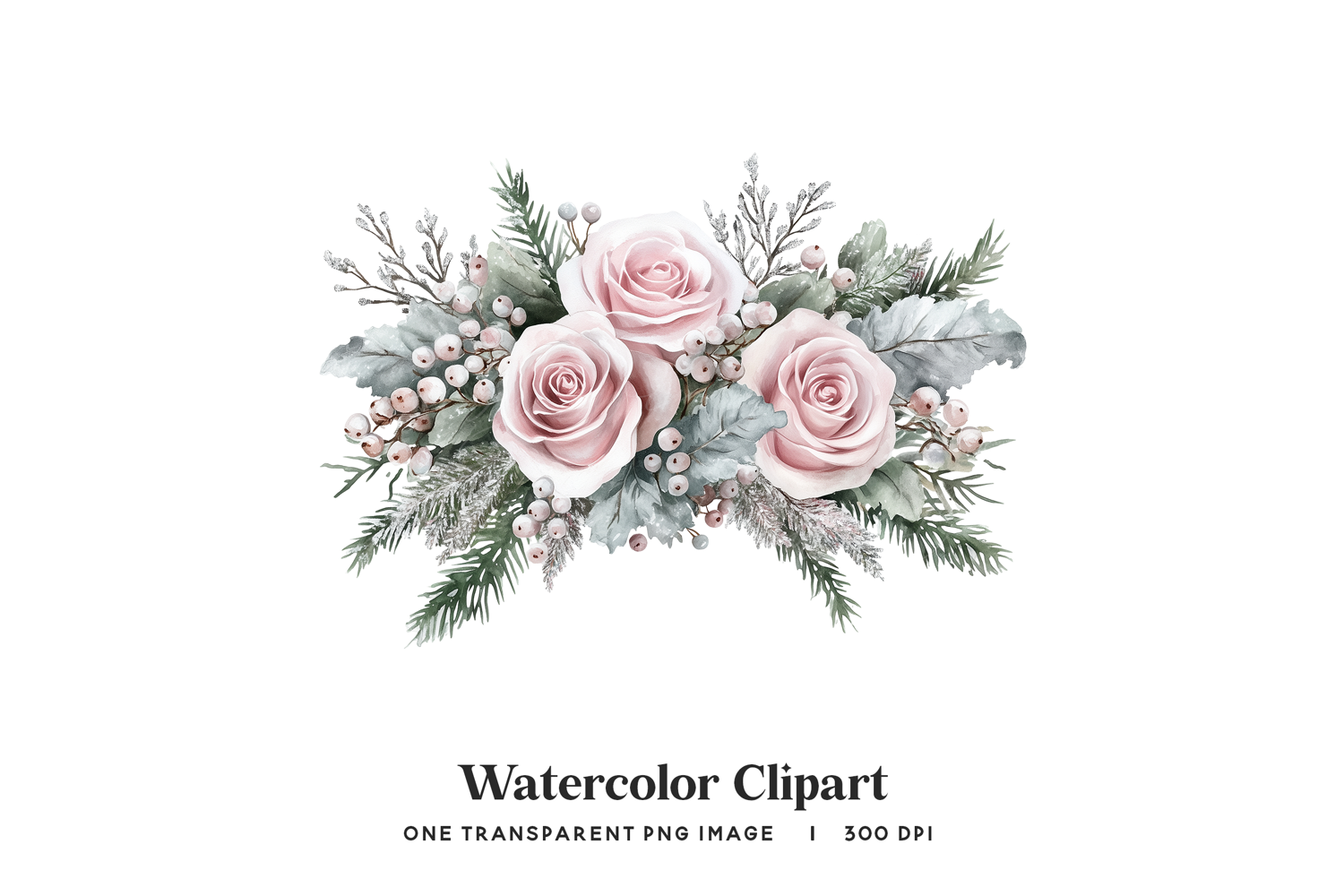 Pink Rose Winter Bouquet Floral PNG Clipart Frosted Berries example image 1