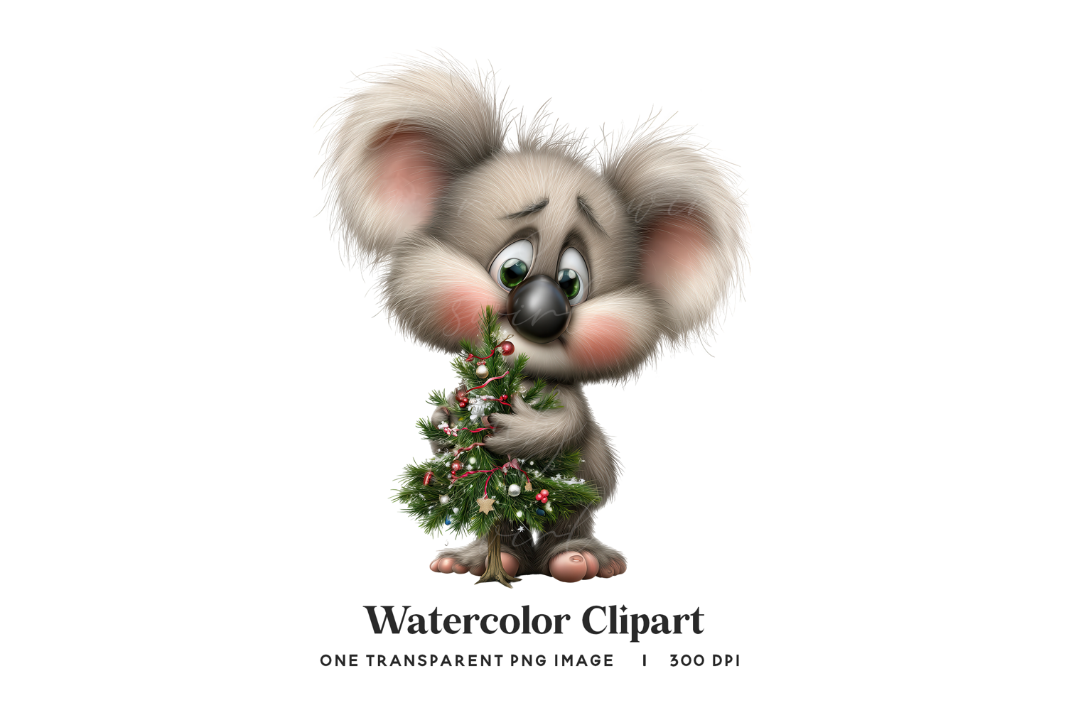 This sweet Christmas koala illustration features an adorable koala hugging a tiny decorated Christmas tree, painted in a soft watercolor style with expressive eyes and detailed holiday accents. Delivered as a high-resolution transparent PNG, this charming design is perfect for festive crafting, printable holiday projects, sublimation art, stickers, children’s Christmas décor, and whimsical seasonal creations. Its gentle expression and miniature tree add heartwarming Christmas magic to any design.