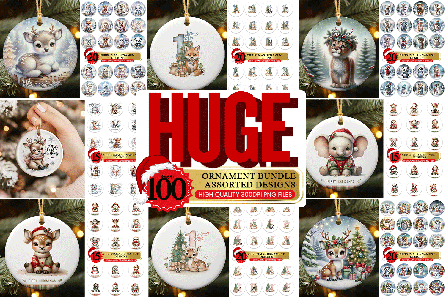 This huge Christmas ornament bundle is packed with over 100 adorable round ornament designs, perfect for POD, sublimation, crafting, and holiday gifting. Inside you’ll find a magical mix of baby animals, winter scenes, festive characters, first Christmas designs, woodland animals, holiday outfits, and cozy Christmas illustrations — all created in a soft, premium watercolor style that customers love.