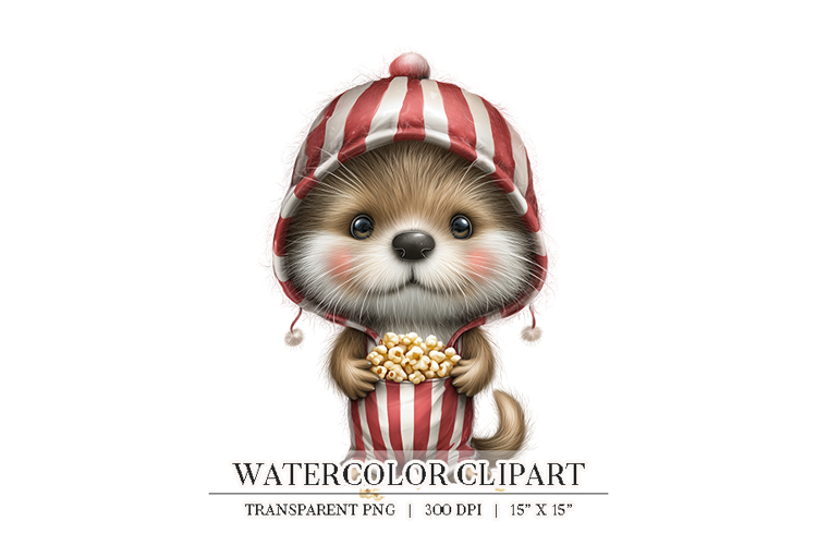 This delightful watercolor otter clipart shows an otter snug in a striped popcorn bucket outfit, holding a pile of golden popcorn with a sweet expression. It’s perfect for movie-night invitations, party décor, kid-themed crafts, sublimation, stickers, scrapbooking, and playful printable designs. The high-definition PNG captures every soft fur detail and vibrant pop of color for a polished, professional finish.
