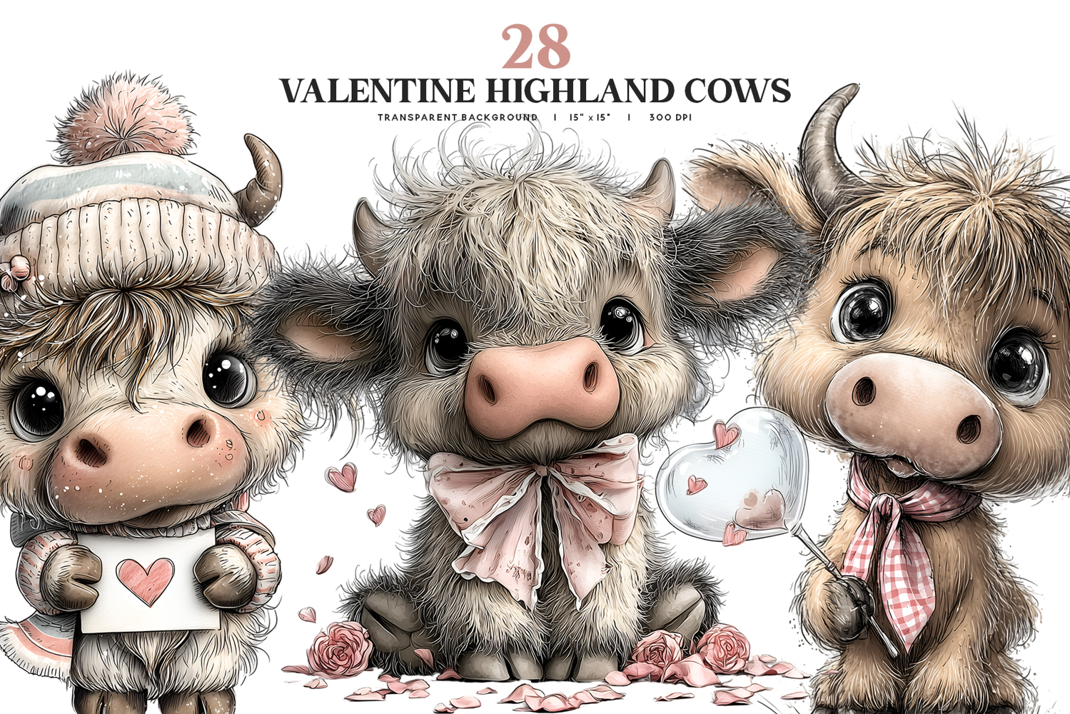 This Valentine Highland Cow clipart bundle brings together 28 beautifully illustrated baby highland cows in soft, romantic themes designed to elevate any creative project with charm and warmth. Each PNG features expressive details, gentle textures, and a whimsical Valentine aesthetic, making the set perfect for cards, stickers, apparel, tumblers, scrapbooking, digital planners, invitations, and print-on-demand designs. With high-resolution 300 DPI artwork and a cohesive style across all images, this bundle offers designers a versatile resource that adds sweetness, personality, and premium visual appeal to every creation.