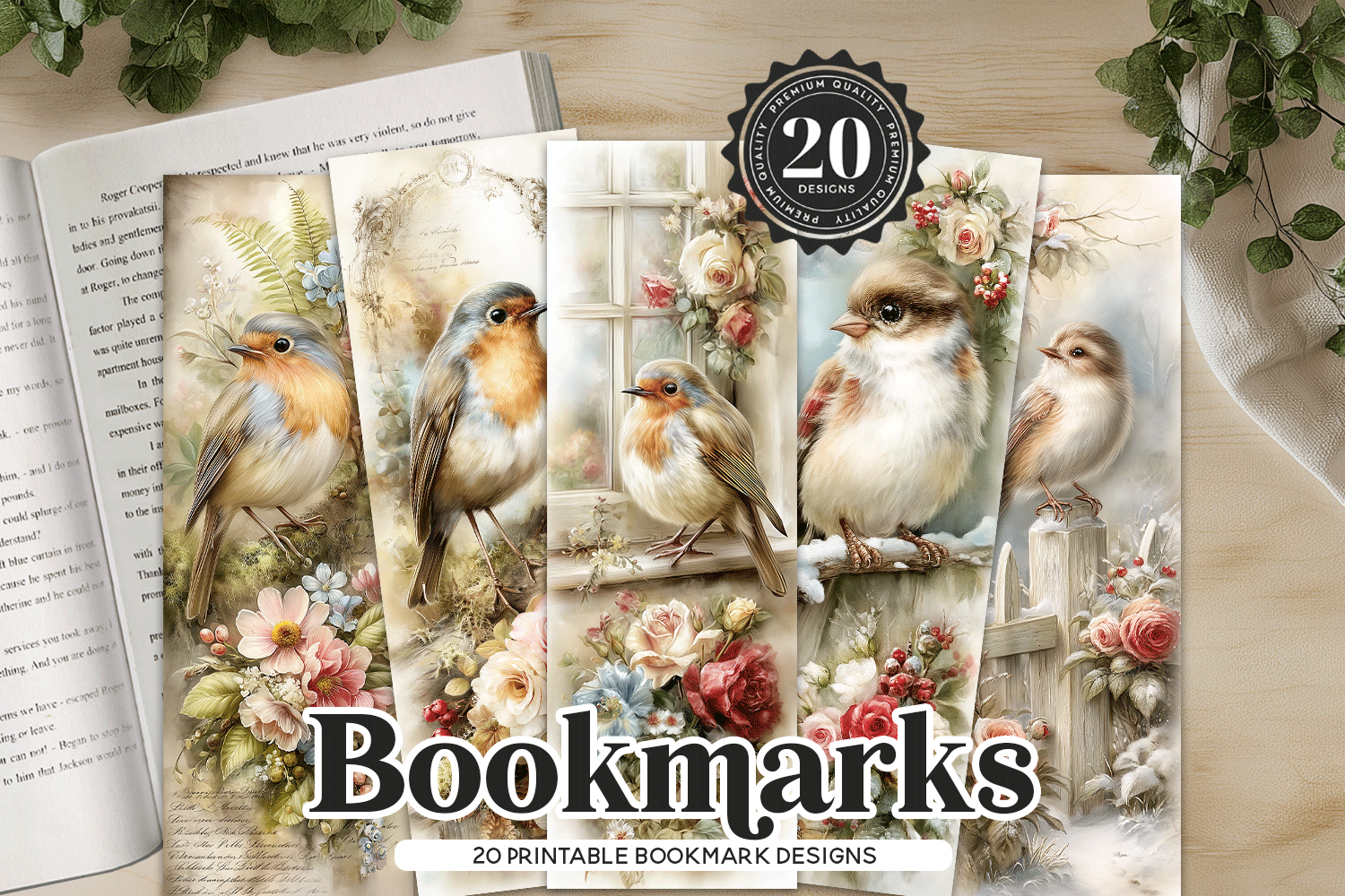 Printable Bird Bookmarks Bundle | 20 Vintage Floral Bookmark