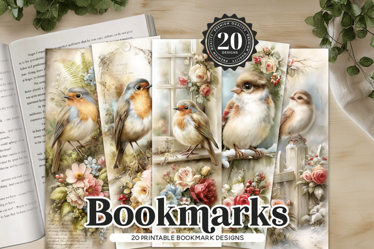 Similar Design Products to Printable Bird Bookmarks Bundle | 20 Vintage Floral Bookmark