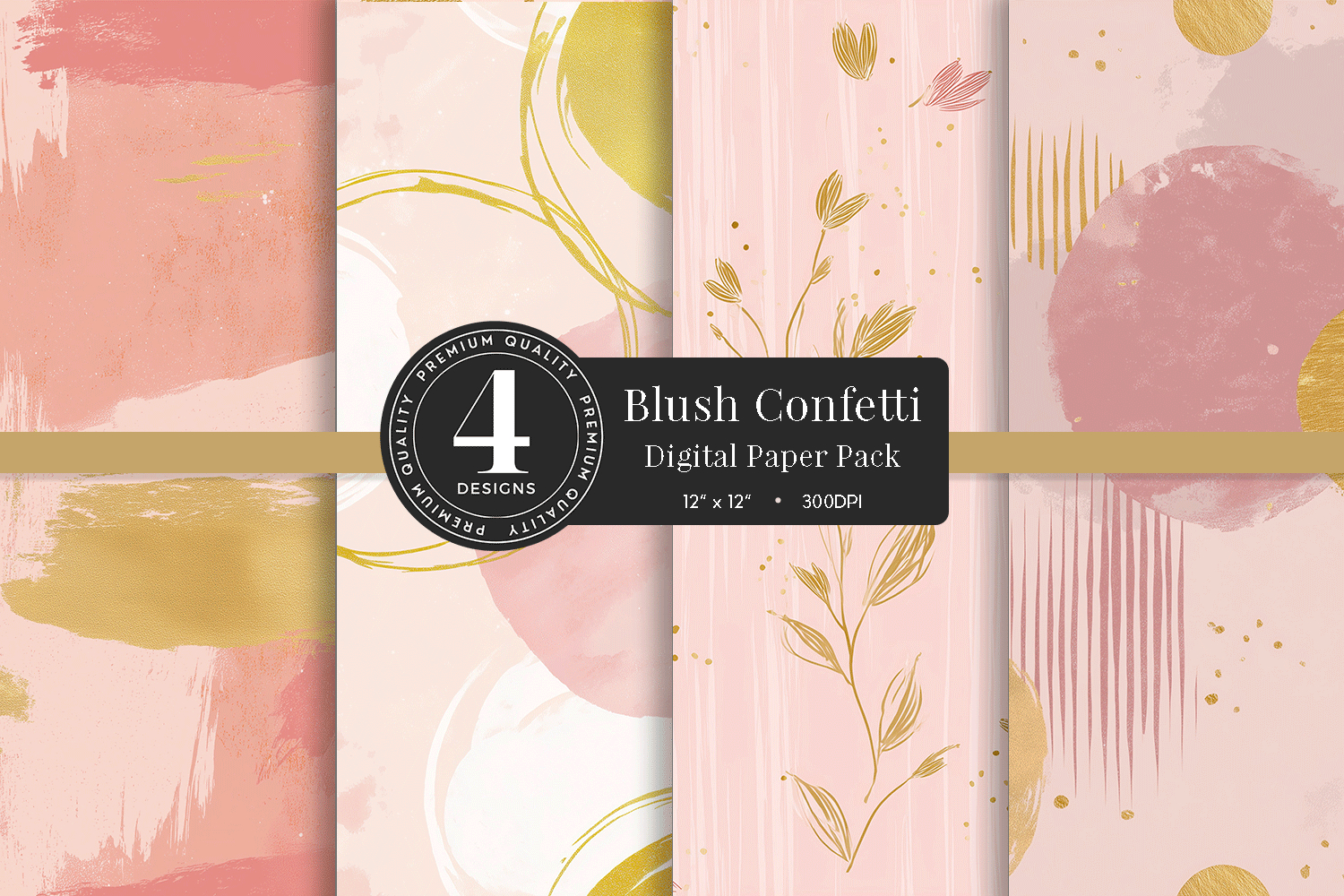 This blush botanical gold digital paper pack was created for designers who love organic details with a modern, feminine finish. Featuring hand-drawn botanical elements, soft blush textures, and elegant gold accents, these high-resolution 12x12 seamless papers are perfect for invitations, planners, branding, scrapbooking, and digital designs that need a refined but approachable look. The balance of airy florals and abstract brushwork makes this pack incredibly versatile—polished enough for weddings and branding, yet gentle enough for everyday creative projects when you want your designs to feel calm, cohesive, and beautifully intentional.