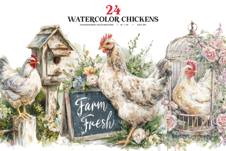 This watercolor chicken clipart bundle is perfect for creators who love classic farmhouse scenes with a warm, rustic touch. Featuring charming chickens surrounded by florals, garden accents, and country details, these illustrations are ideal for wall art, kitchen decor, labels, packaging, stationery, signs, and cozy farm-themed creative projects. The soft, painterly style brings a welcoming countryside feel to designs inspired by rural living, cottage gardens, and timeless farm charm.