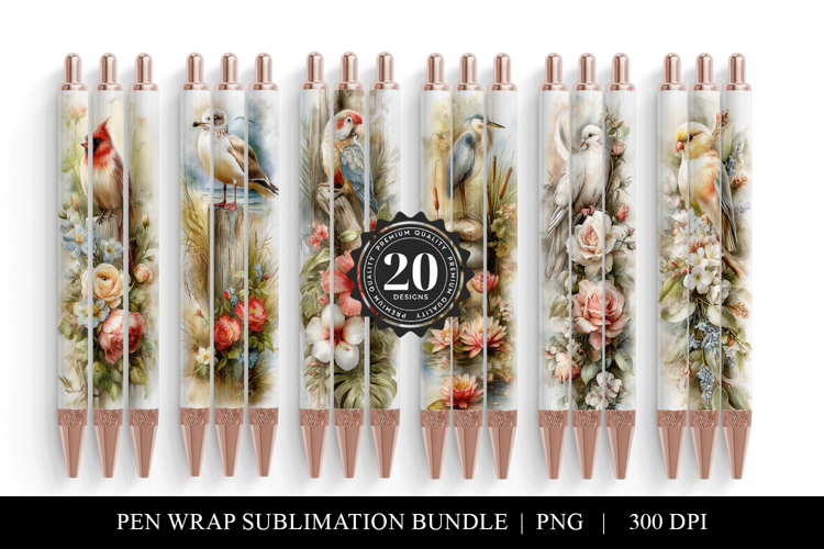 20 Bird and Floral Sublimation Pen Wrap Designs