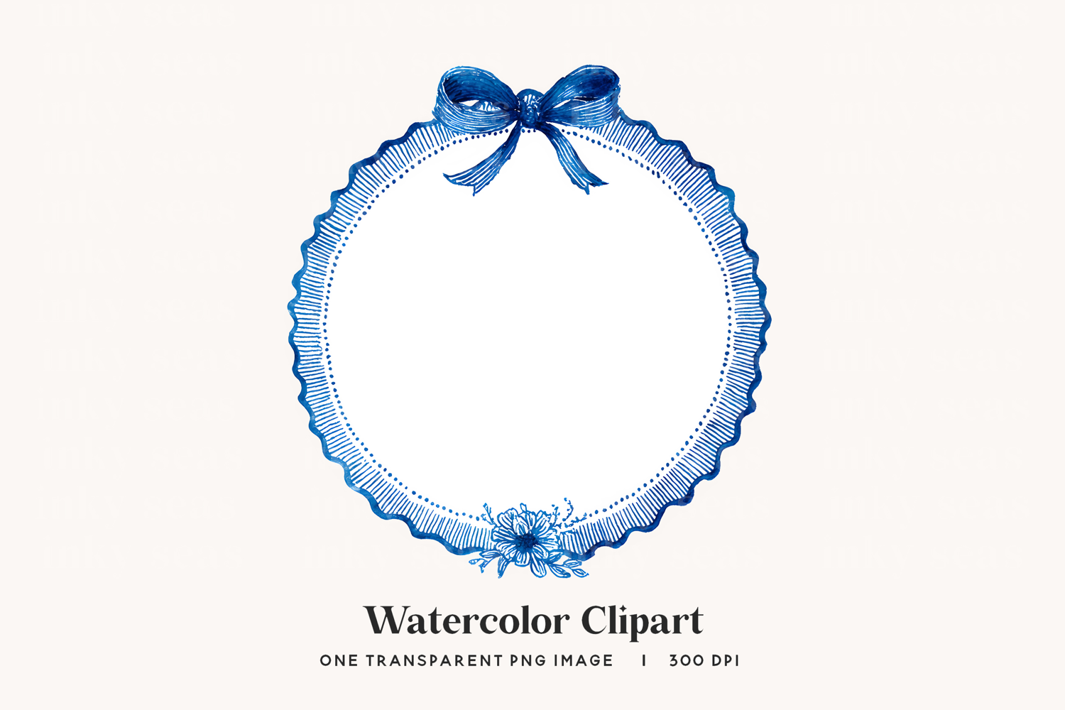 Watercolor Bow Digital Download Wedding Stationery Pastel Clipart Scallop Circle Card Making Supply Light Blue Frame Delicate Border Nursery Branding Baby Blue Wreath