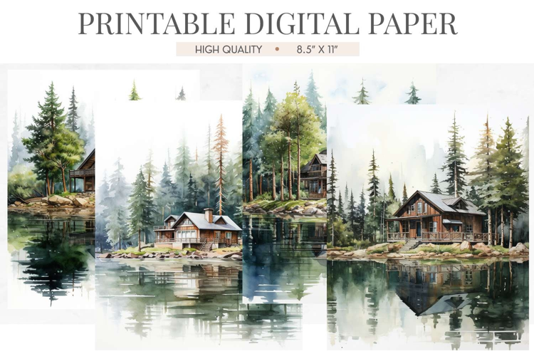 Digital Paper Scrapbook Paper Printable Pages Junk Journal Kit Junk Journal Pages Watercolor Cabin Lakeside Cabin Misty Pines Forest Retreat Woodland Cottage