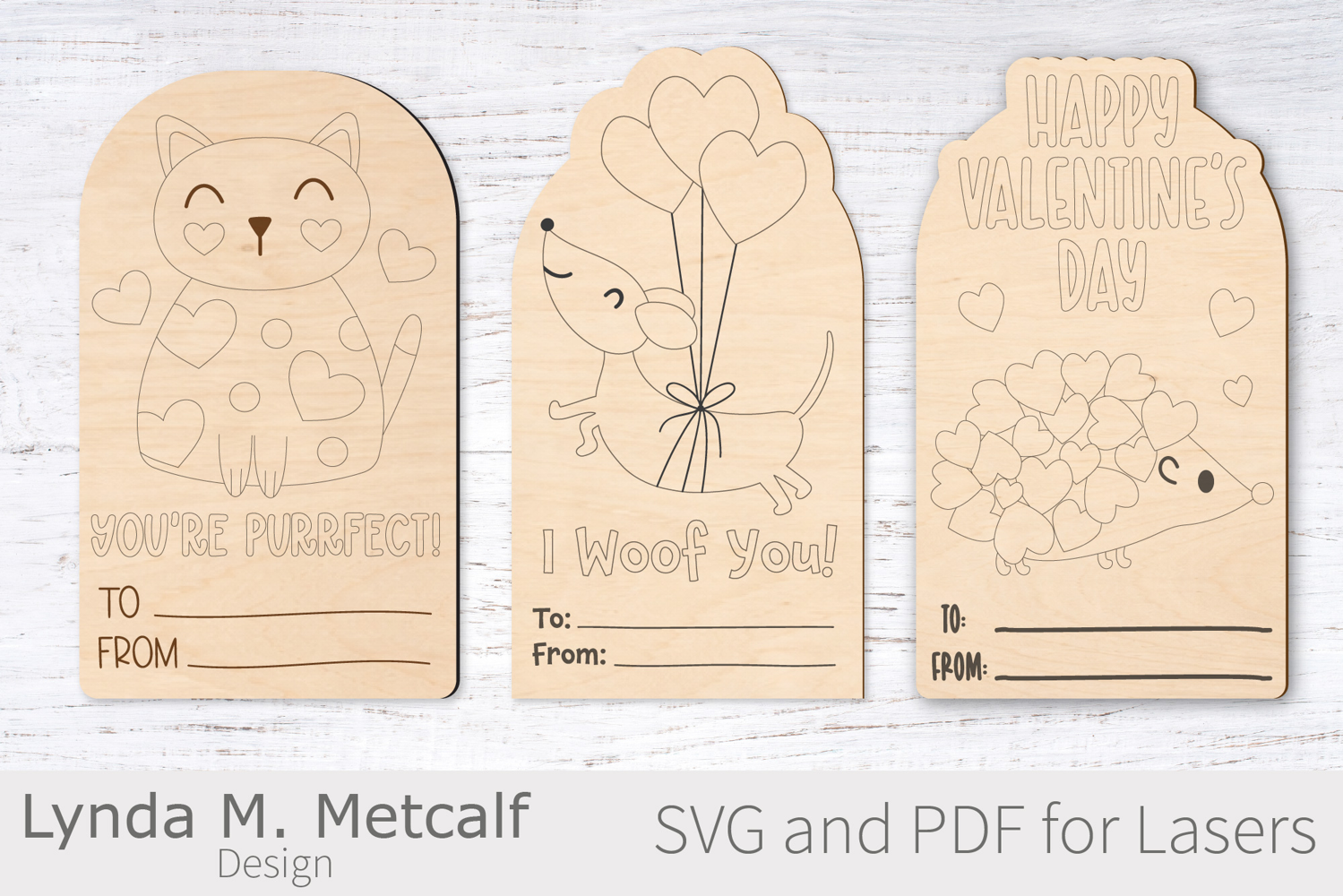 This cat, dachshund and hedgehog Valentine card SVG bundle is a sweet way to add a handmade touch to Valentine’s Day. Designed for laser cutting, these designs work perfectly on paintable wood so you can customize them with craft paints or markers.