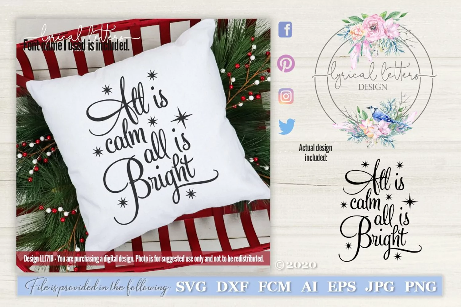 Similar Design Products to All Is Calm All Is Bright Christmas SVG Cut File LL171B