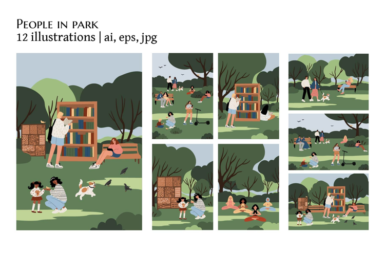Diverse People Relaxing in Park Illustration Set example image 1