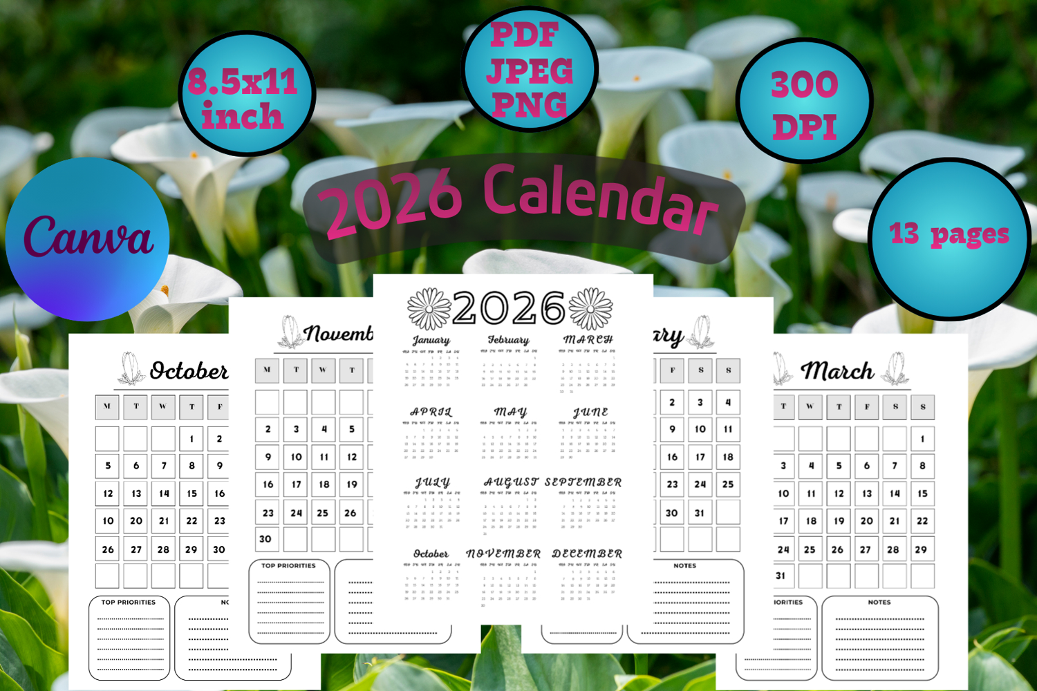 You will find 13 pages 2026 calendar that will help you to regulate your time.