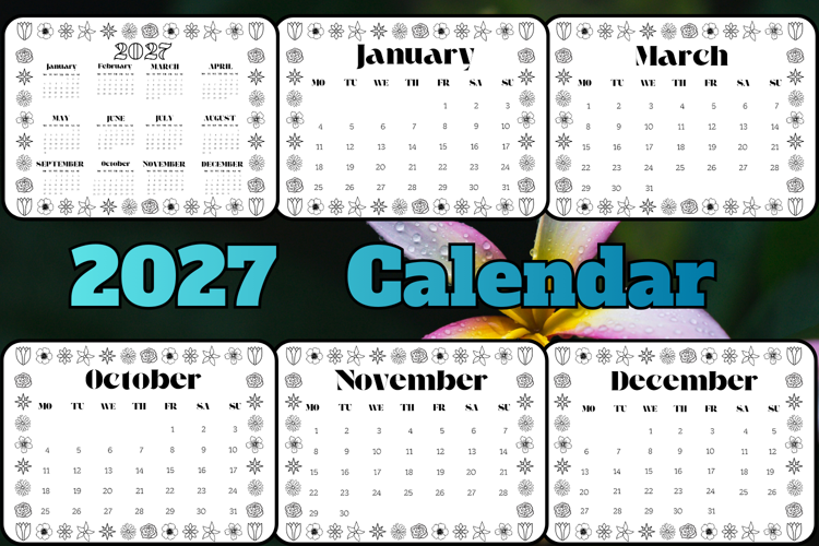 This is an instant downloadable, editable modern black and white Canva 2027 calendar Template for any person who wants to regulate his/her life . This template is 100% customizable in the FREE version of Canva. This means that you will be able to easily change the fonts, colours, background,etc. to fit your own brand.