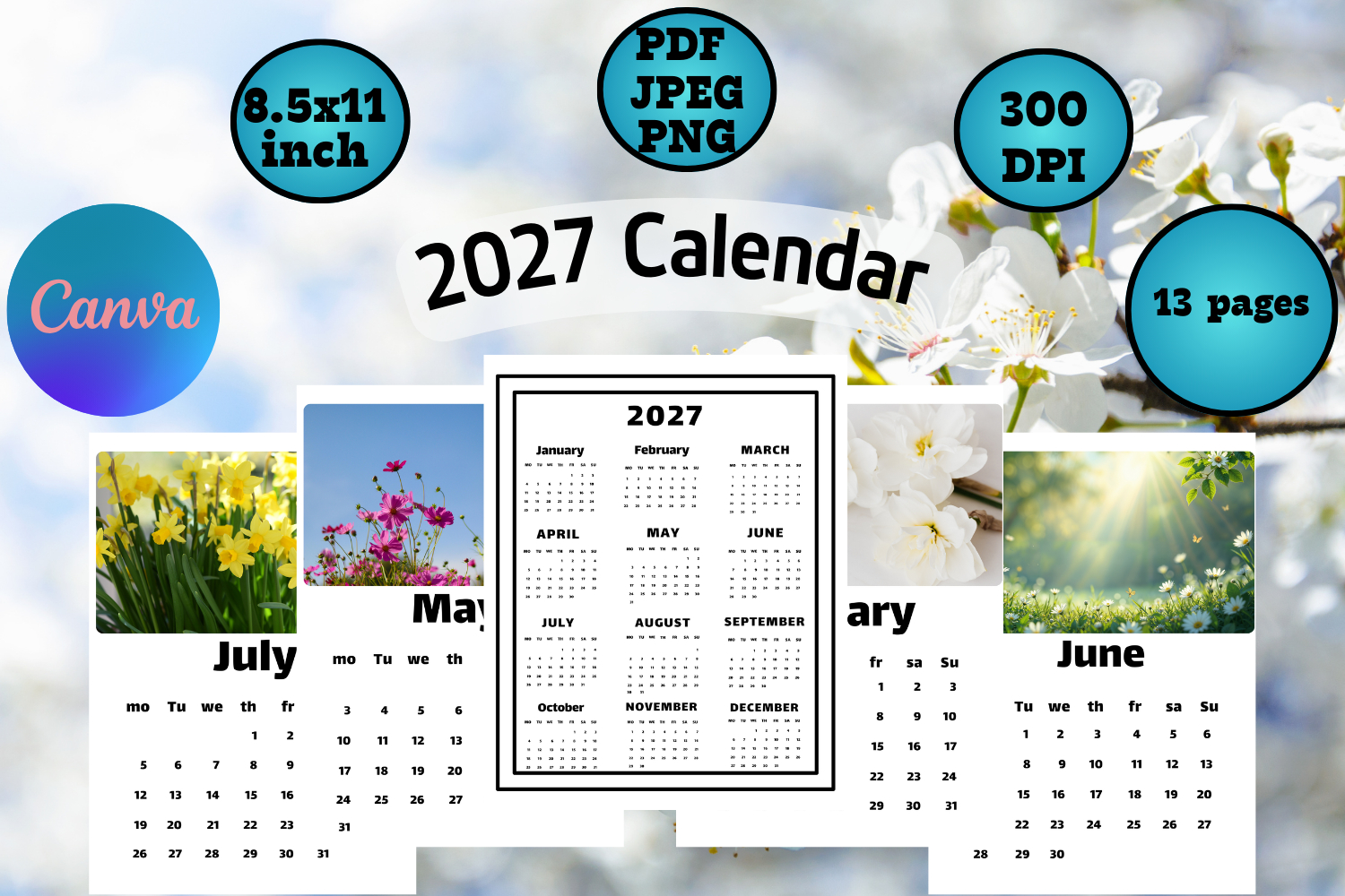 You will find 13 pages 2027 calendar that will help you to regulate your time.