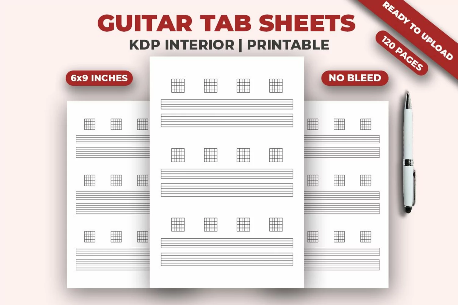 Hi There, This is Guitar Tab Sheets KDP Interior is perfect for grow fastly your KDP publishing business on Amazon 100% formatted and tested for upload on KDP also ready for notebook, diary, ready to printing.