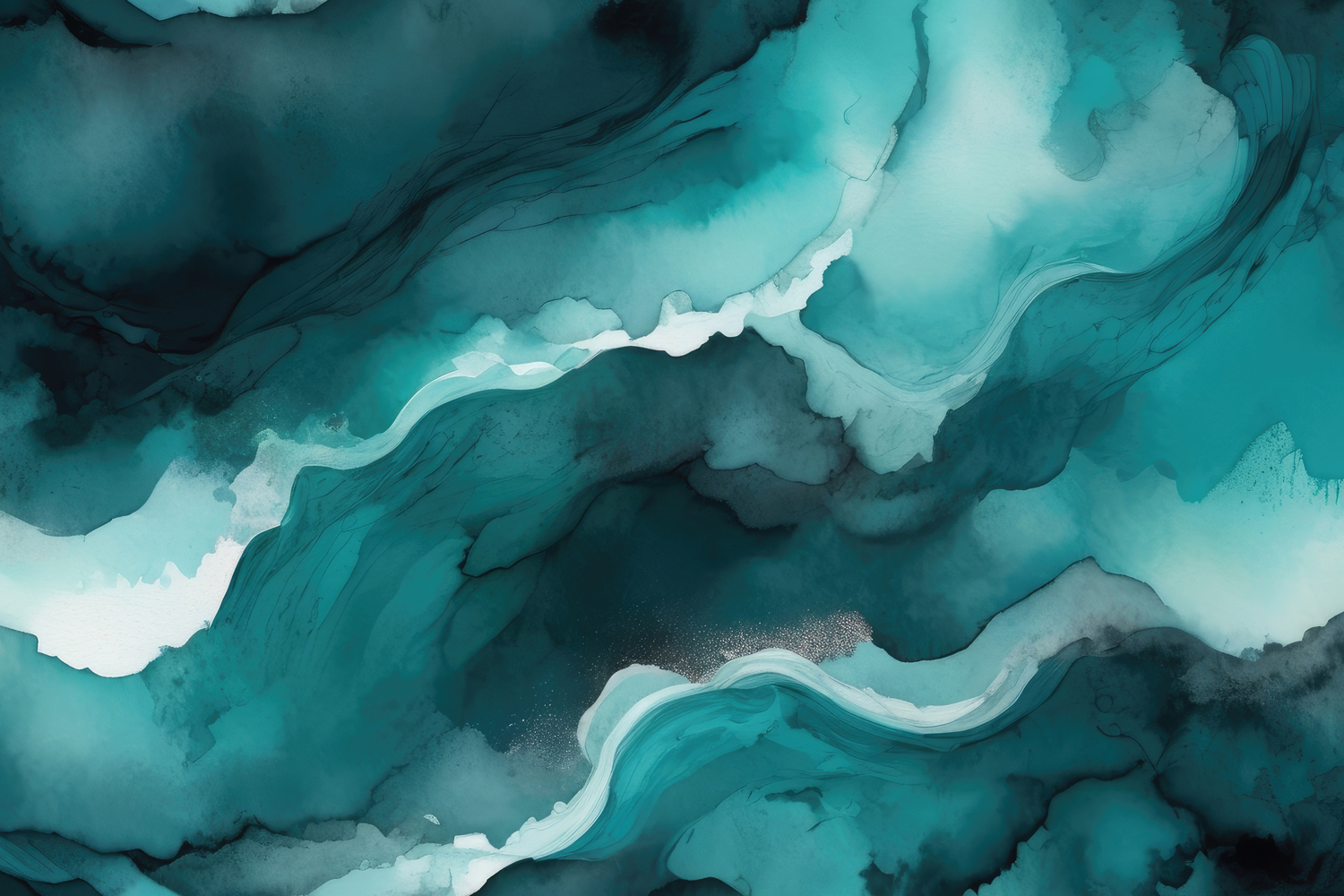 Modern Ink Painted Watercolor Fluid Artistic Abstract Vibrant Teal Aqua