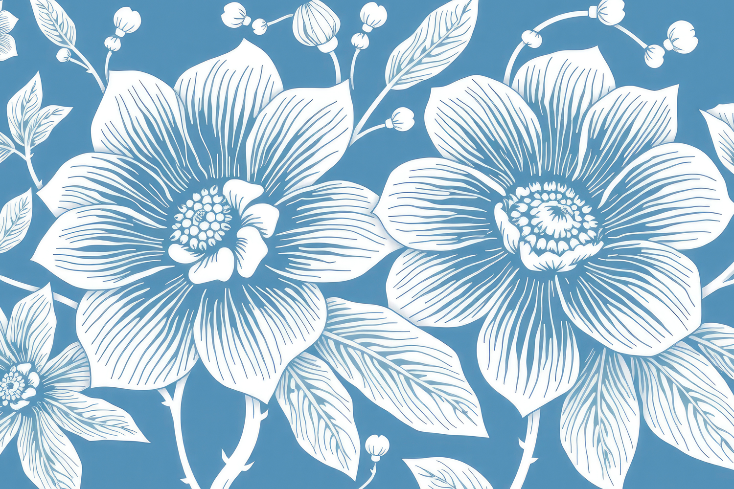 Decorative Floral Artistic Flowers Engraved Pattern Bloom Botanical Blue Intricate
