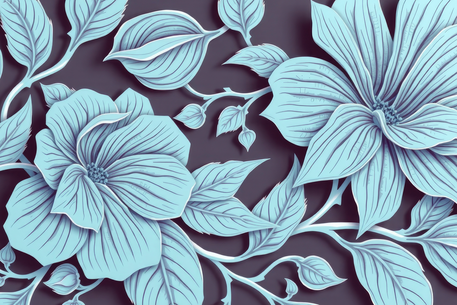 Decorative Shadow Elegant Floral Flowers Pattern Bloom Botanical Blue Carving