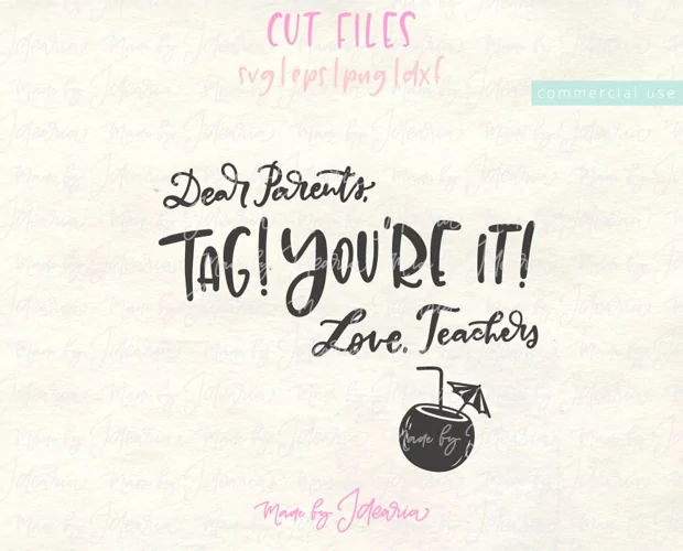 This svg files featuring a saying Tag You’re It would make a funny teacher t-shirt.