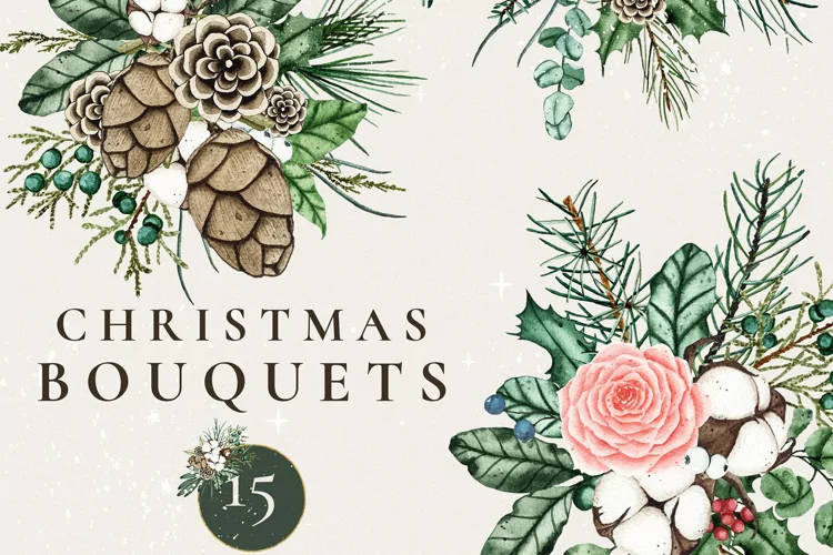 Watercolor bouquet clipart, Christmas bouquet clipart