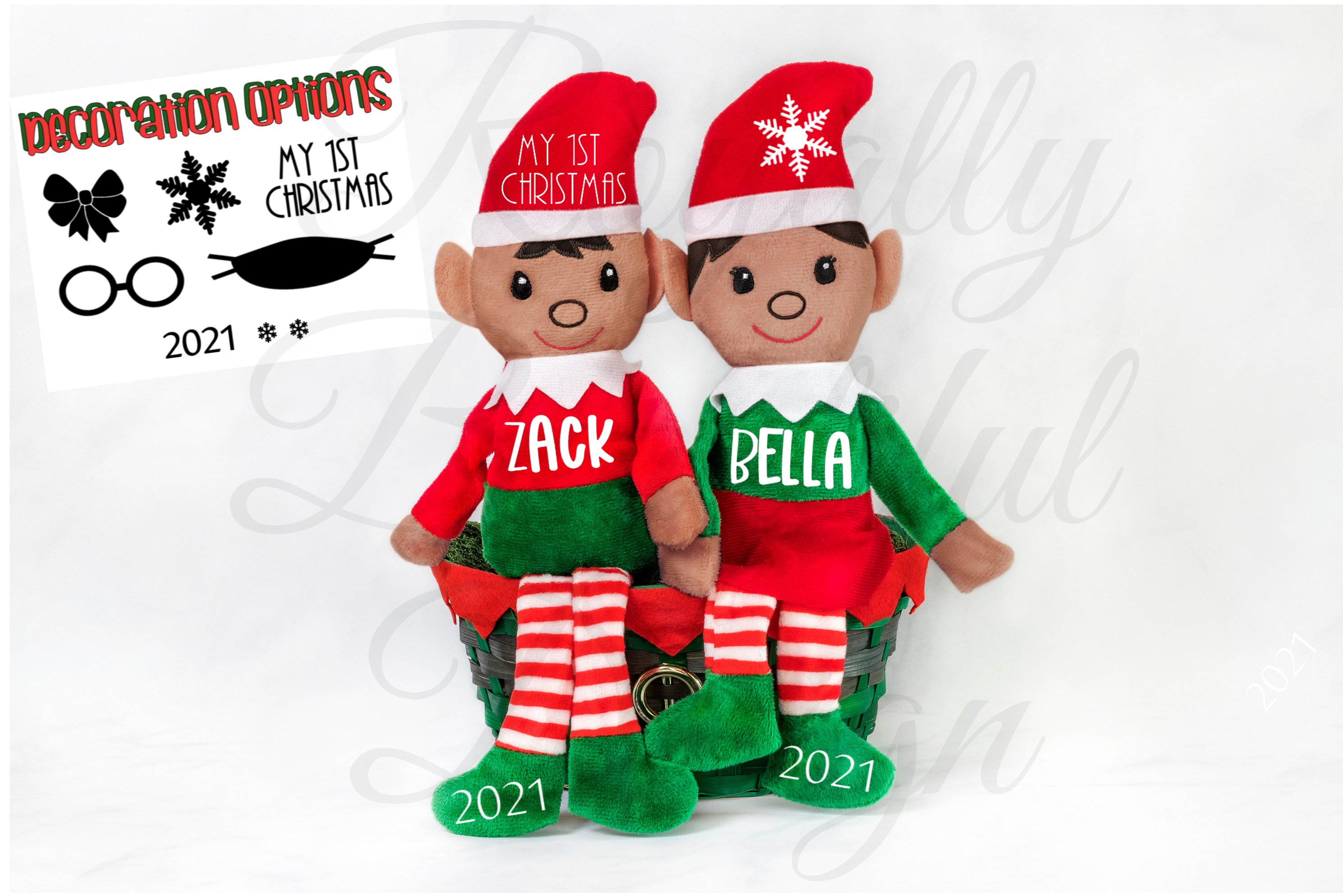 This Christmas Elf Dolls Mockup is great for showcasing your fun, personalized plush elves to your customers! Overlay your customized designs such as eyeglasses, bow, snowflake, kid's name or monogram, year, and so much more!