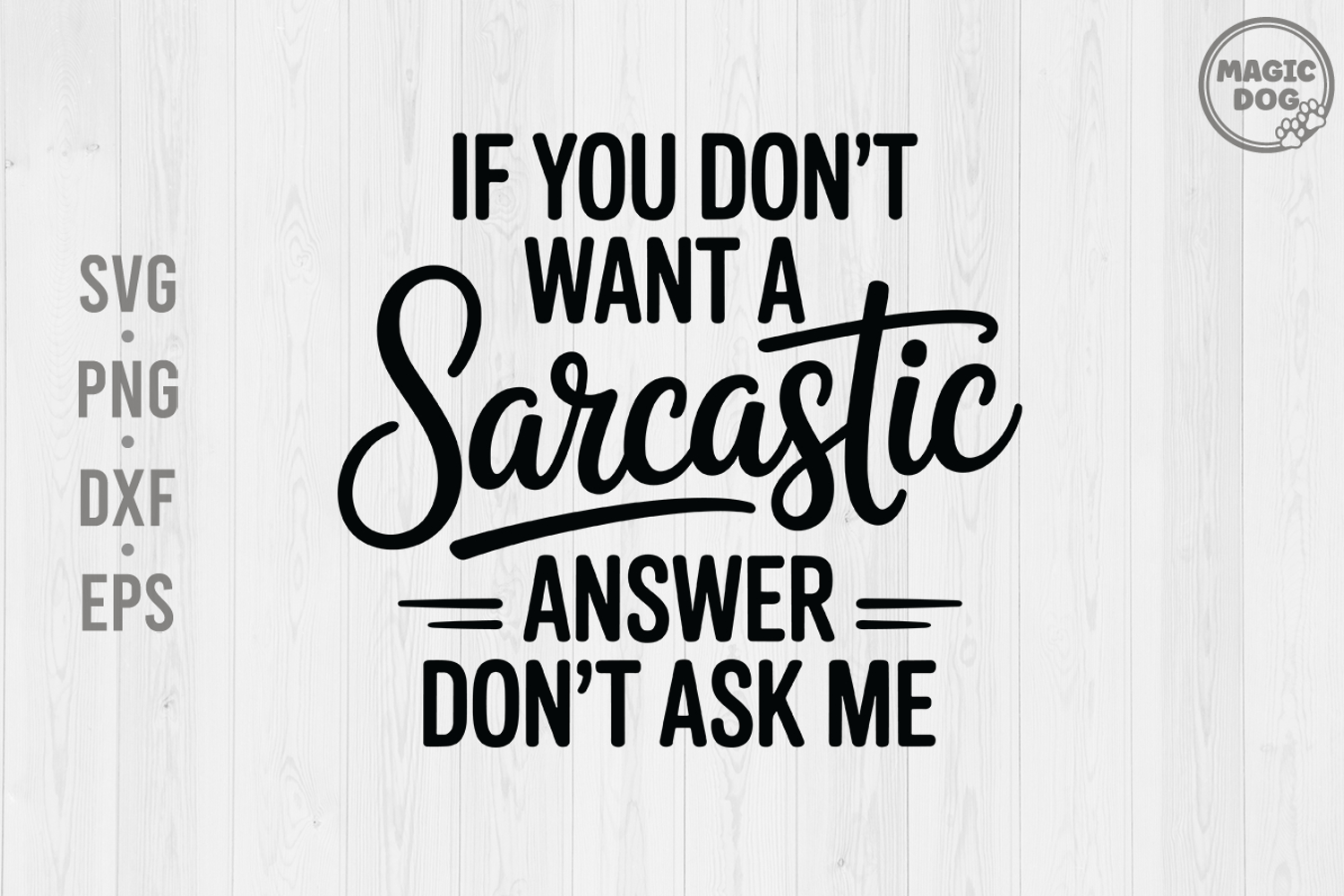 If You Don't Want A Sarcastic Answer, Don't Ask Funny Sarcasm SVG, PNG, EPS, and DXF files. Printing on the t-shirts, Mugs, Bowls, Pillows, Posters, Wallpaper, and other things you want.