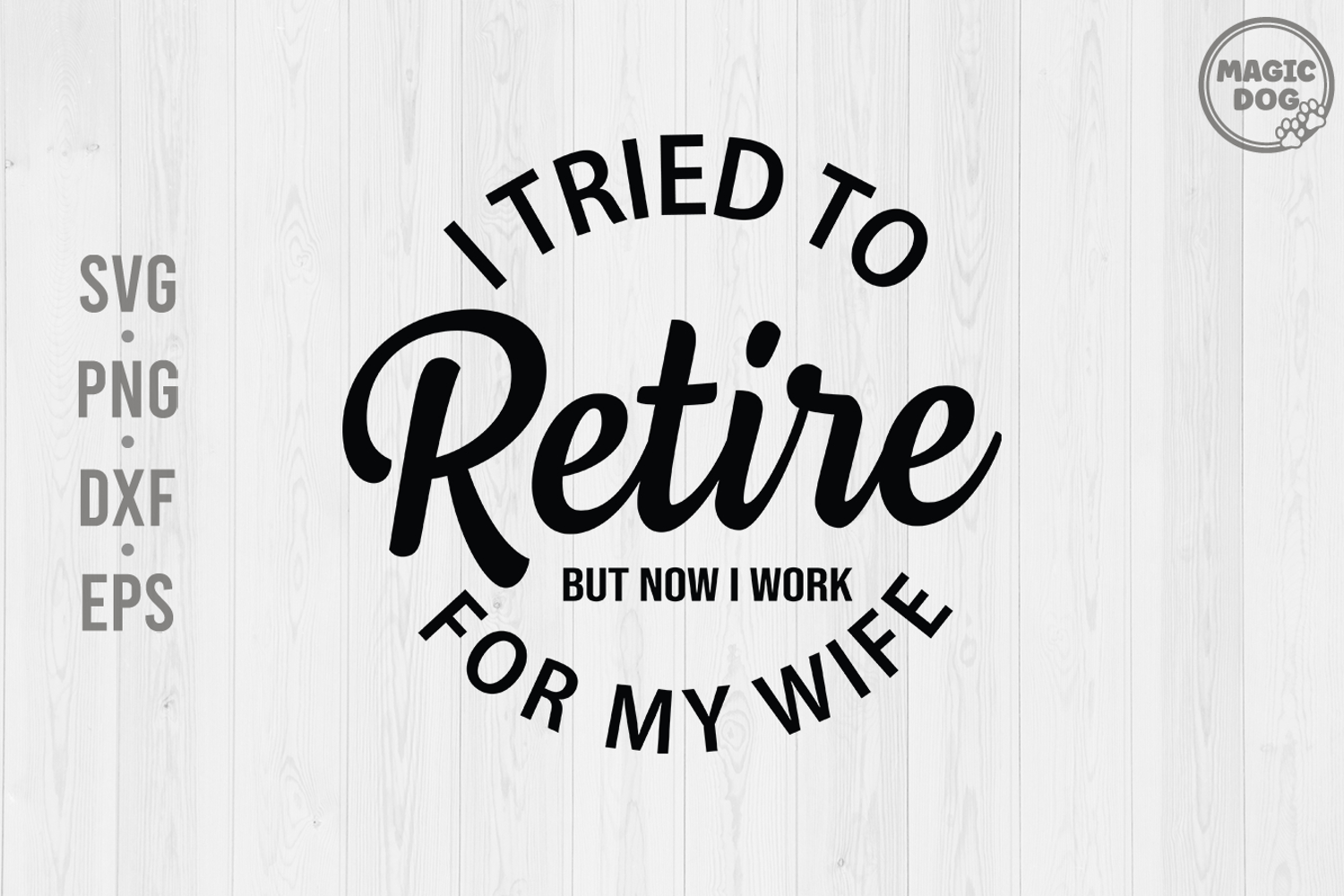 I Tried To Retire But Now I Work For My Wife, Tried to Retire Sarcastic Retirement Married Life Husband Wife Humor SVG, EPS, PNG, and DXF files. Printing on the t-shirts, Mugs, Bowls, Pillows, Posters, Wallpaper, and many other things you want.