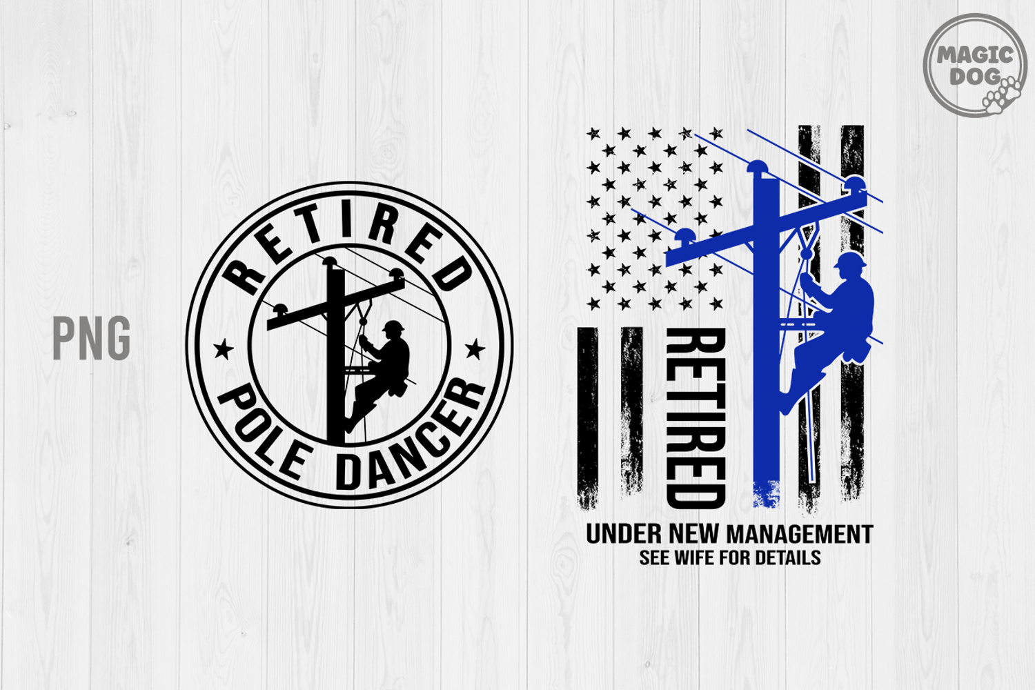 Retired Lineman: Electrician Power Pole, Retirement Dad, Lineworker Power PNG file. Printing on the t-shirts, Mugs, Bowls, Pillows, Posters, Wallpaper, and other things you want.
