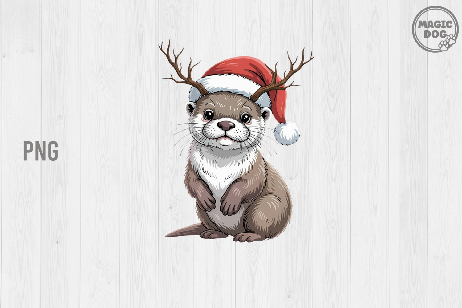 Otter Christmas PNG: Santa Hat Reindeer Antlers, Holiday Animal Digital Download. This file is generated with AI assistance.