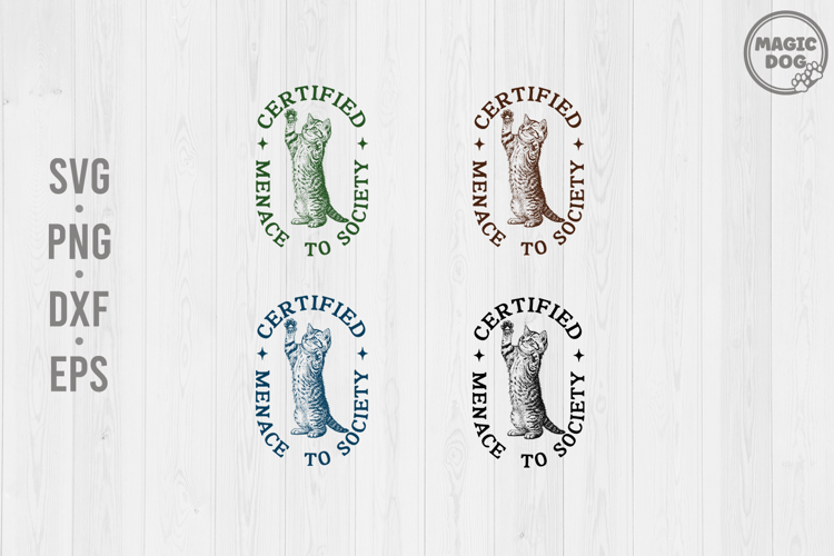 Certified Menace To Society Funny Cat Vintage Badge, Sarcastic Cat SVG, PNG, EPS, and DXF files. Printing on t-shirts, Mugs, Bowls, Pillows, Posters, Wallpaper, and other things you want.
