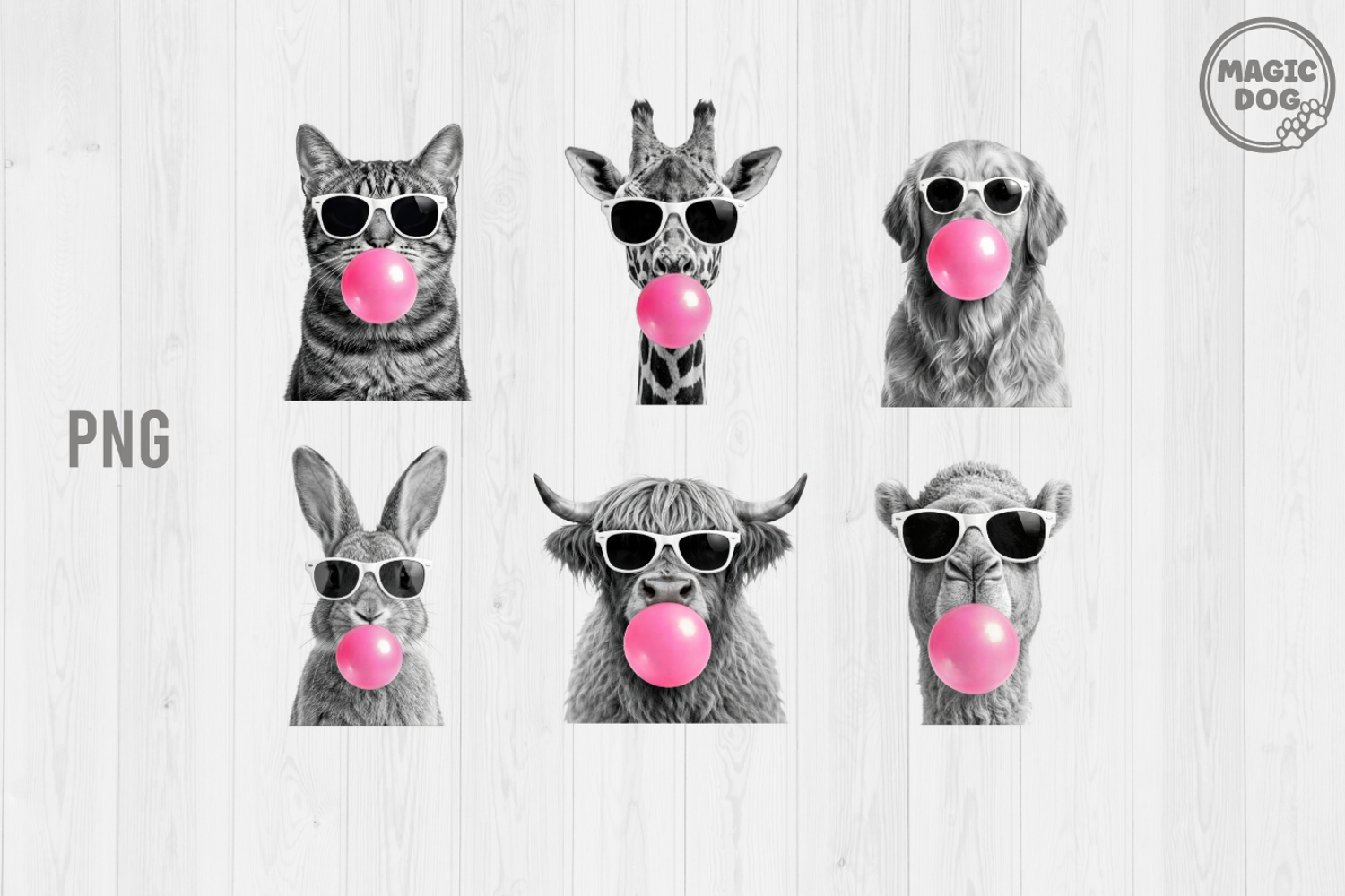 Funny Animal Bubble Gum PNG Bundle Cool Sunglasses Printable Wall Art Digital Download. This file is generated with AI assistance.