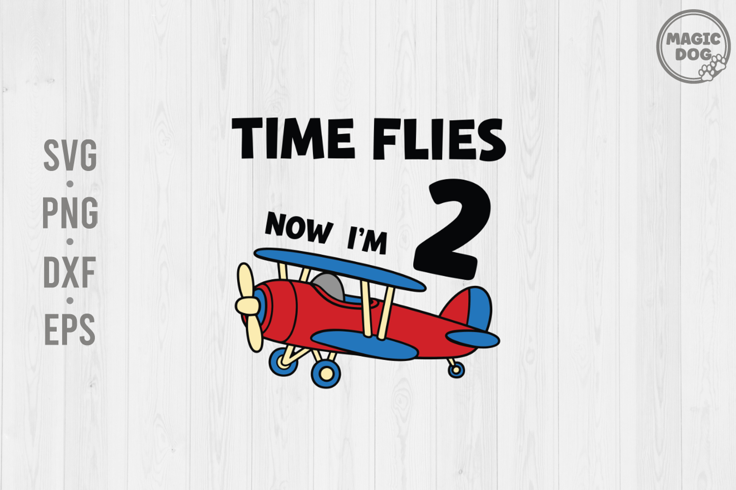 Time Flies Now I’m 2 Airplane Birthday Pilot Theme Third Birthday Party Kids Aviation SVG, PNG, EPS, and DXF files. Printing on the t-shirts, Mugs, Bowls, Pillows, Posters, Wallpaper, and other things you want.