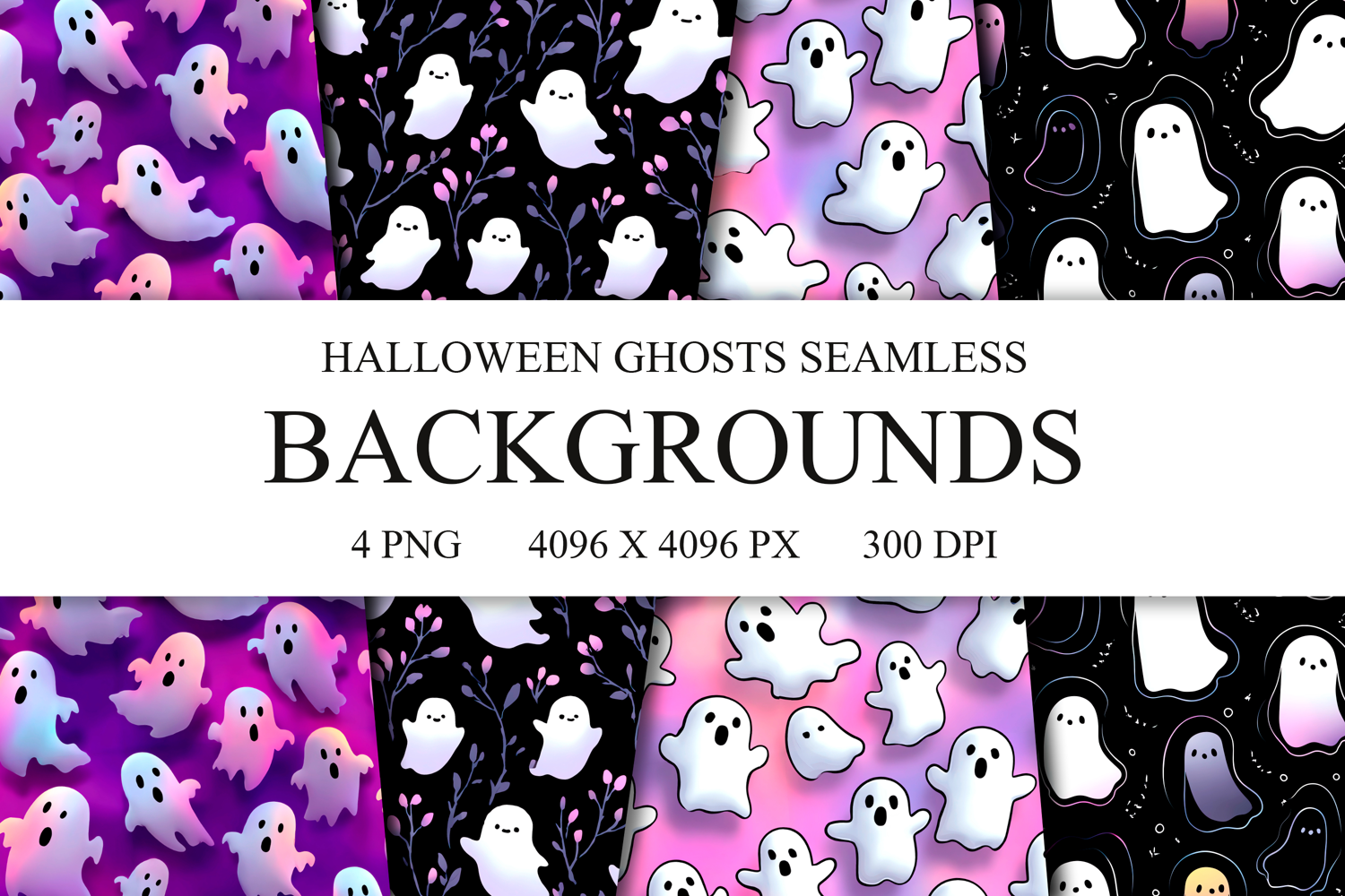 4 Halloween Ghosts Seamless Patterns, Digital Paper PNG