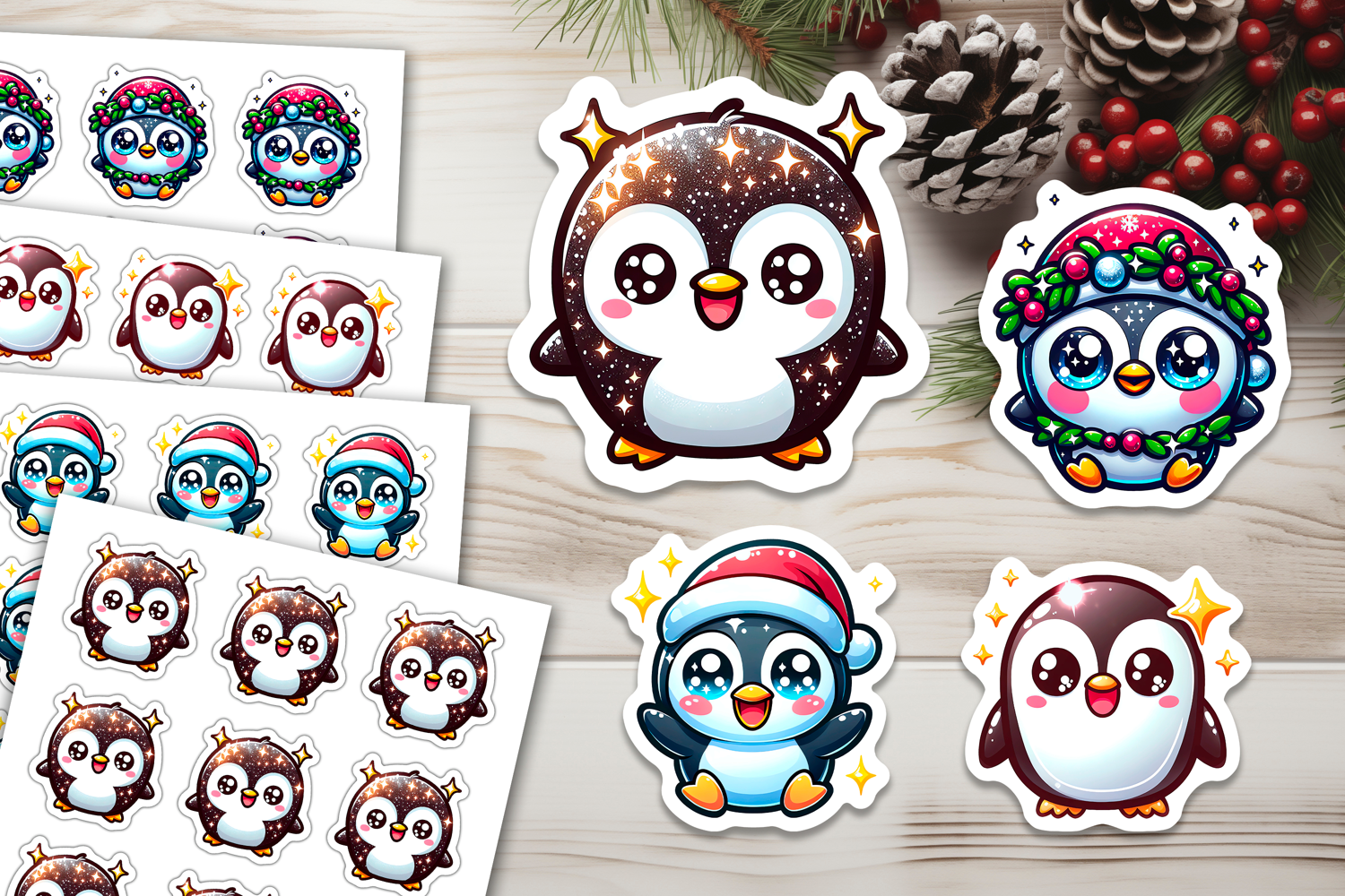 Similar Design Products to 4 Funny Christmas Penguin Stickers, Xmas Stickers PNG Files