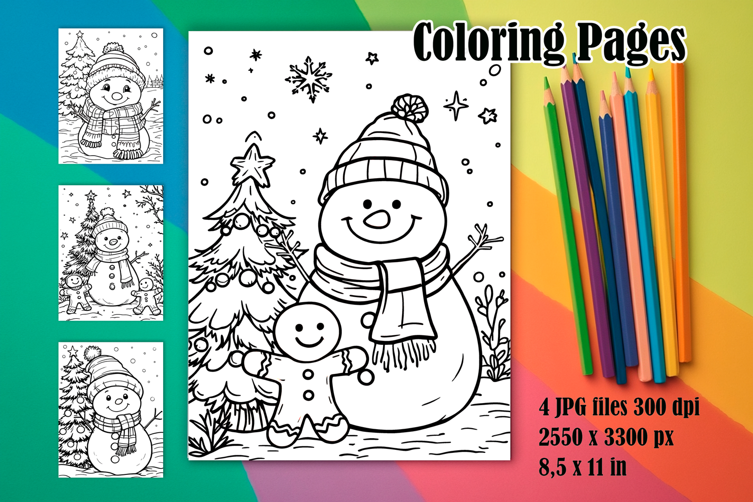 Similar Design Products to 4 Cute Christmas Snowman Coloring Pages, Xmas Designs