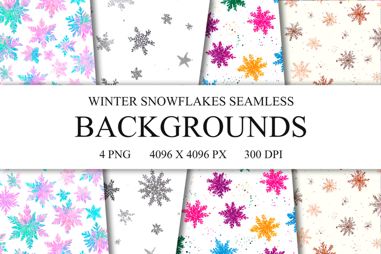 4 Winter Snowflakes Seamless Patterns, Xmas Digital Paper