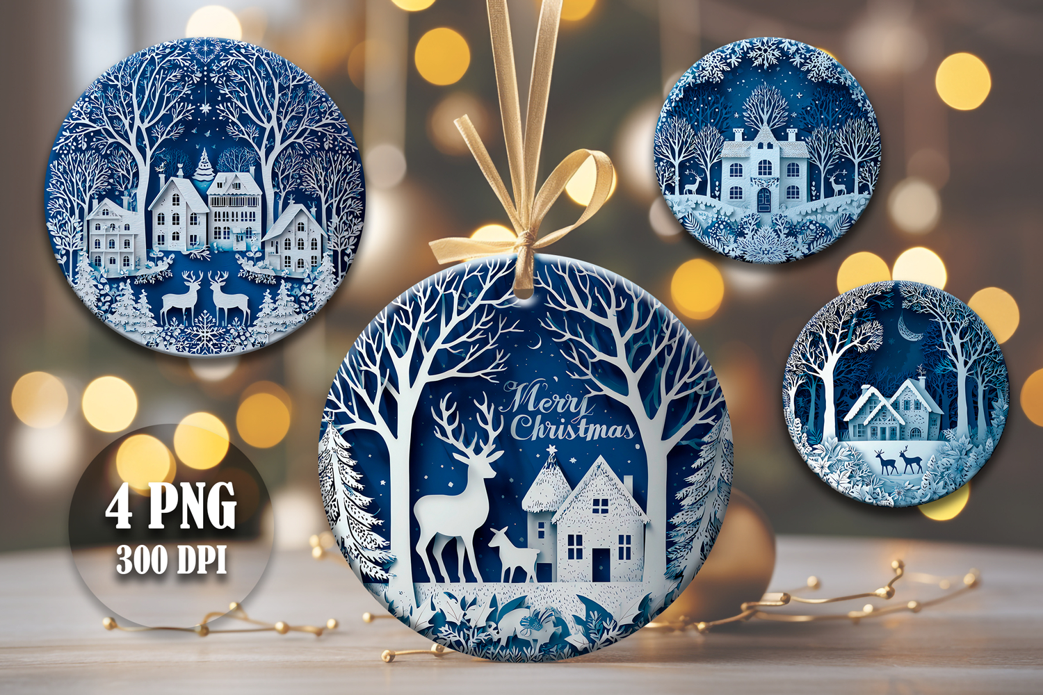 Similar Design Products to 4 Christmas Paper Cut Round Ornaments, Xmas Sublimation PNG