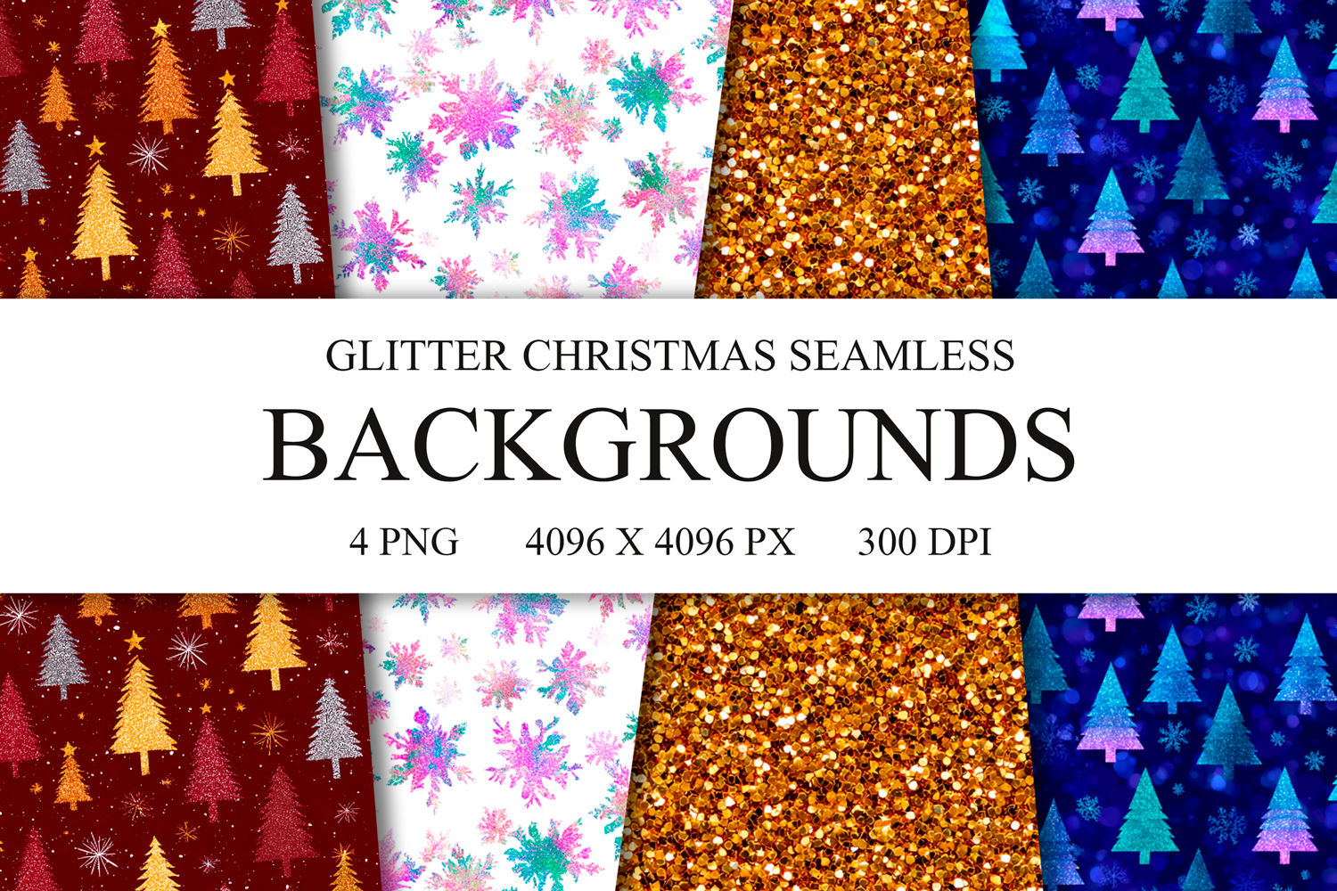 4 Glitter Christmas Seamless Patterns, Xmas Digital Paper