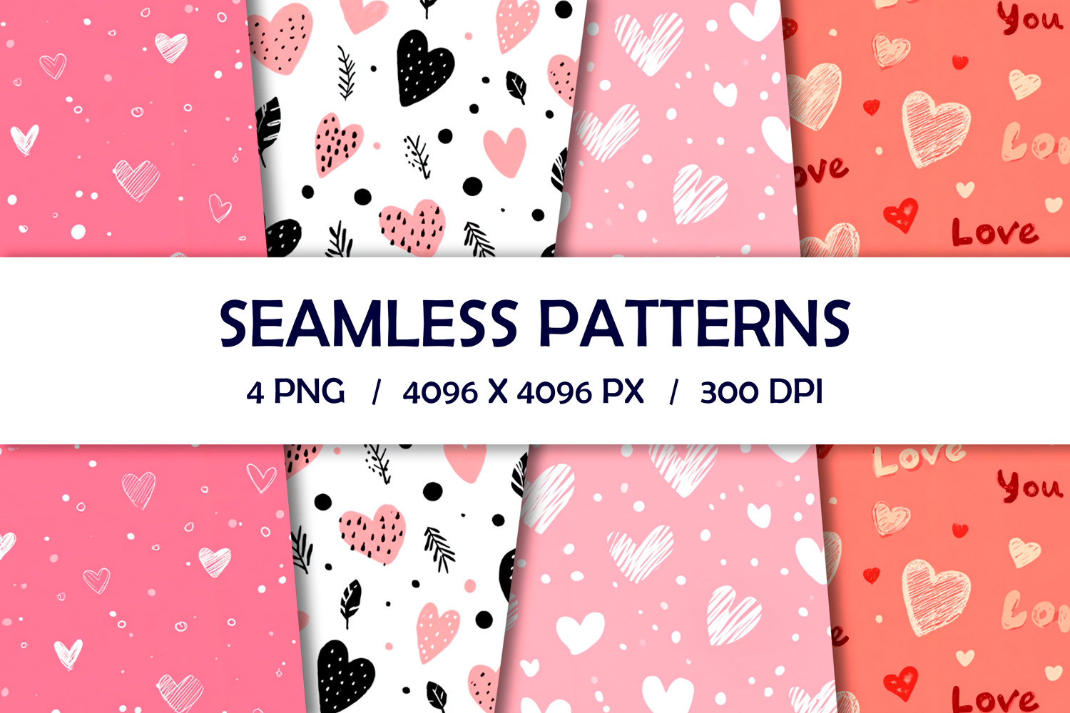 Similar Design Products to Whimsical Heart Seamless Patterns, Valentines Digital Paper