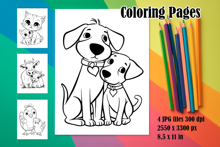 Similar Design Products to 4 Cute Pets Coloring Pages, Mothers Day Printable Designs