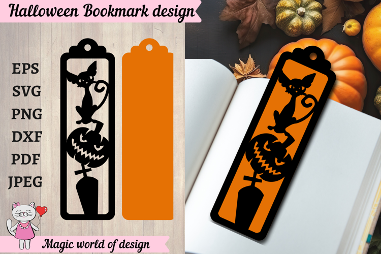 Halloween scary pumpkin Bookmark SVG, Paper Cut Files