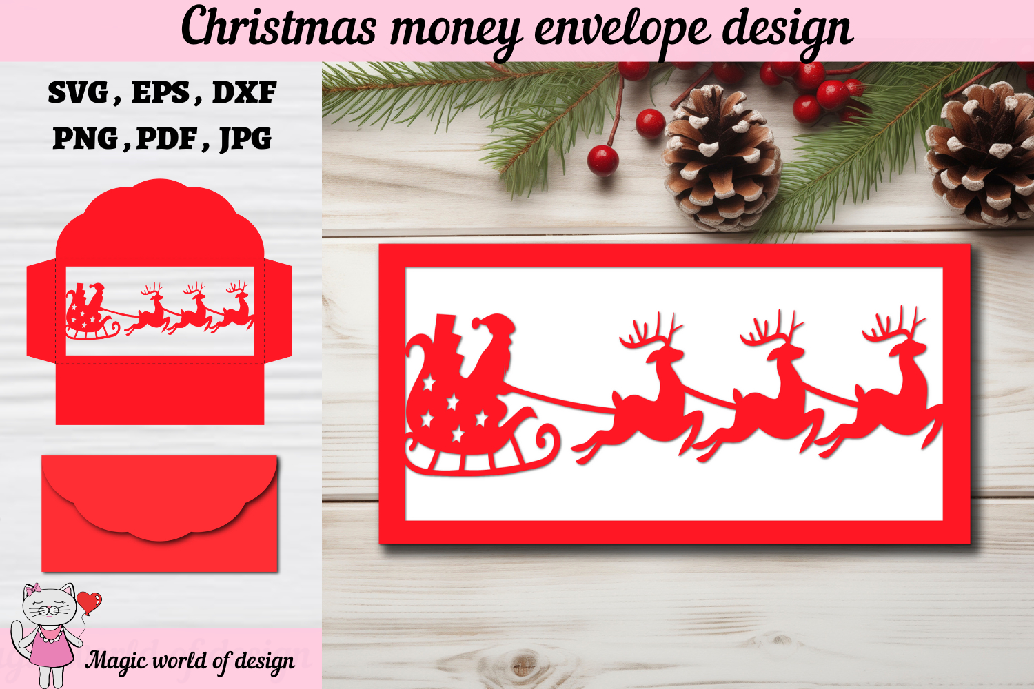 Christmas Santa Claus on Reindeer Money Envelope svg example image 1
