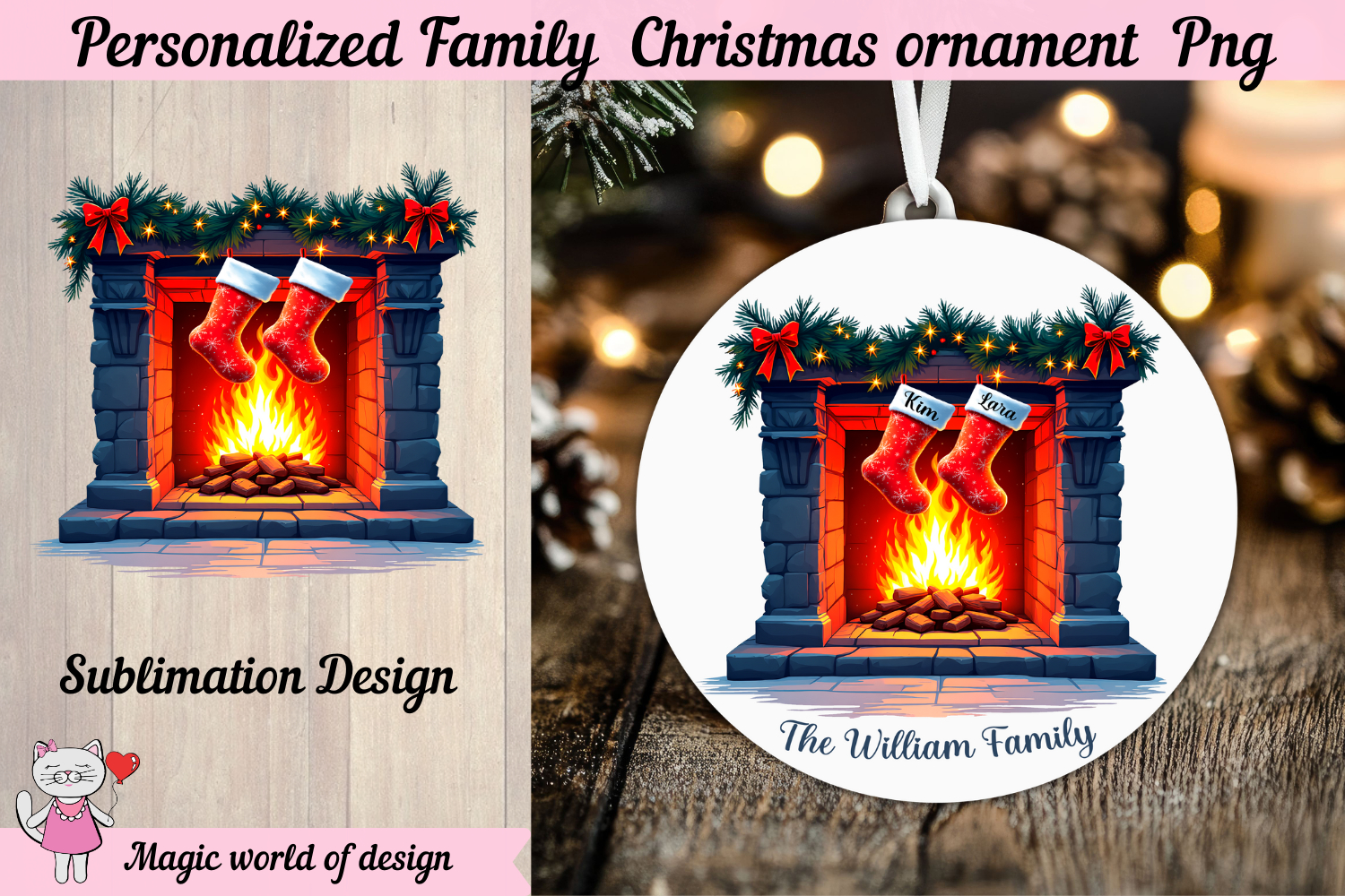 Xmas Fireplace PNG Personalized Family 2 Stockings example image 1