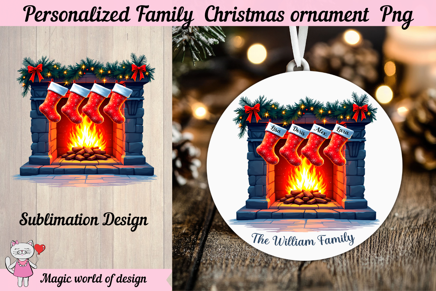 Xmas Fireplace PNG Personalized Family 4 Stockings example image 1